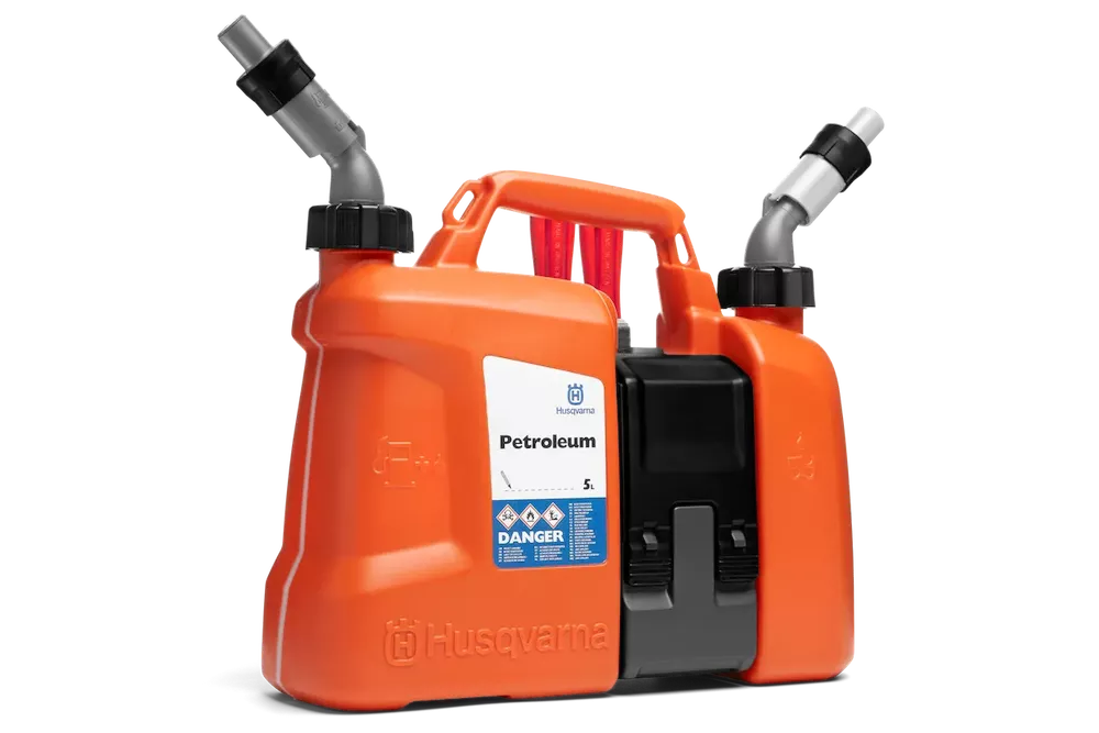 La tanica combinata Husqvarna permette di effettuare il rifornimento in modo veloce e senza schizzi o sprechi. Inoltre, la capienza delle due taniche hanno il migliore rapporto carburante/olio (5,0 / 2,5 litri) e aggiunto nuovi scomparti per gli utensili e i ricambi più comuni per il lavoro nel bosco. Entrambi i beccucci sono ad arresto automatico antitraboccamento. Omologata ai sensi delle raccomandazioni ONU.